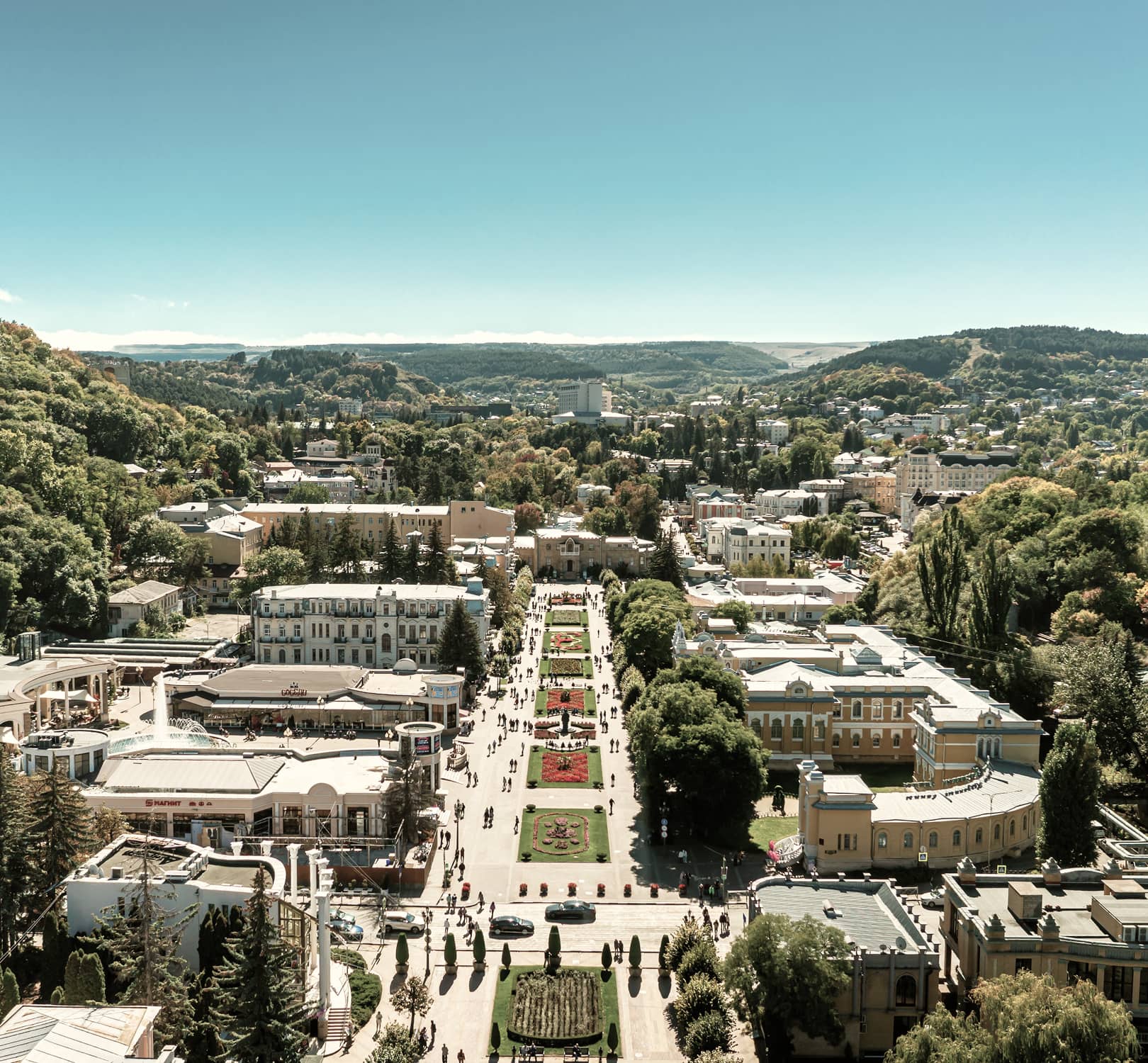 В непосредственной близости расположен международный аэропорт Минеральные Воды с современным терминалом, отвечающим самым высоким стандартам сервиса. Ежедневно он принимает множество прямых рейсов из крупнейших городов страны.